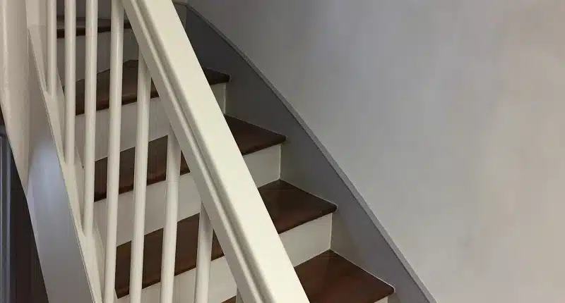 L’escalier à été peint en blanc, les marches poncées et traitées en bois naturel.